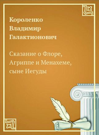 Короленко Владимир Галактионович (1853–1921) – русский писатель, публицист, общественный деятель, почетный академик Петербургской и Российской АН. Убежденный правдоискатель и защитник гонимых, Короленко ценил в людях неудовлетворенность жизнью, постоянное движение, даже если цель не осознана до конца. Почти все его рассказы созданы на основе пережитого или виденного самим писателем, и в их центре – непокорившийся человек. «Сказание о Флоре, Агриппе и Менахеме, сыне Иегуды» написано в 1886 году и тогда же напечатано в «Северном вестнике», № 10. Рассказ полемически направлен против толстовской проповеди непротивления злу насилием.